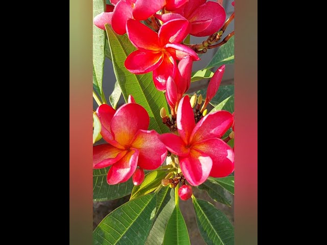 Flowers: The defining feature is the large, fragrant flowers with five petals, coming in various colors like white, yellow, pink, or red. They bloom in clusters during the warm season. The flowers are known for their sweet, plumeria fragrance.