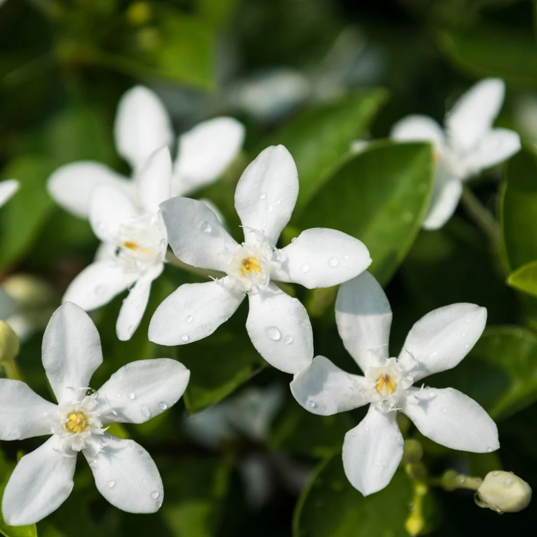 A Cascade of Fragrant Blooms: Jasmine boasts clusters of delicate white flowers that bloom throughout the spring and summer months.