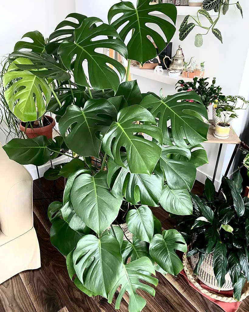- The large, aerial leaves are the defining feature of Monstera deliciosa.